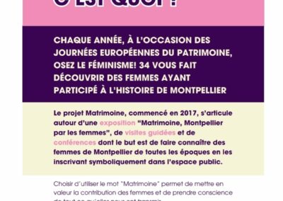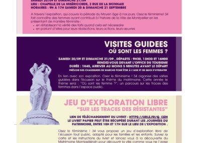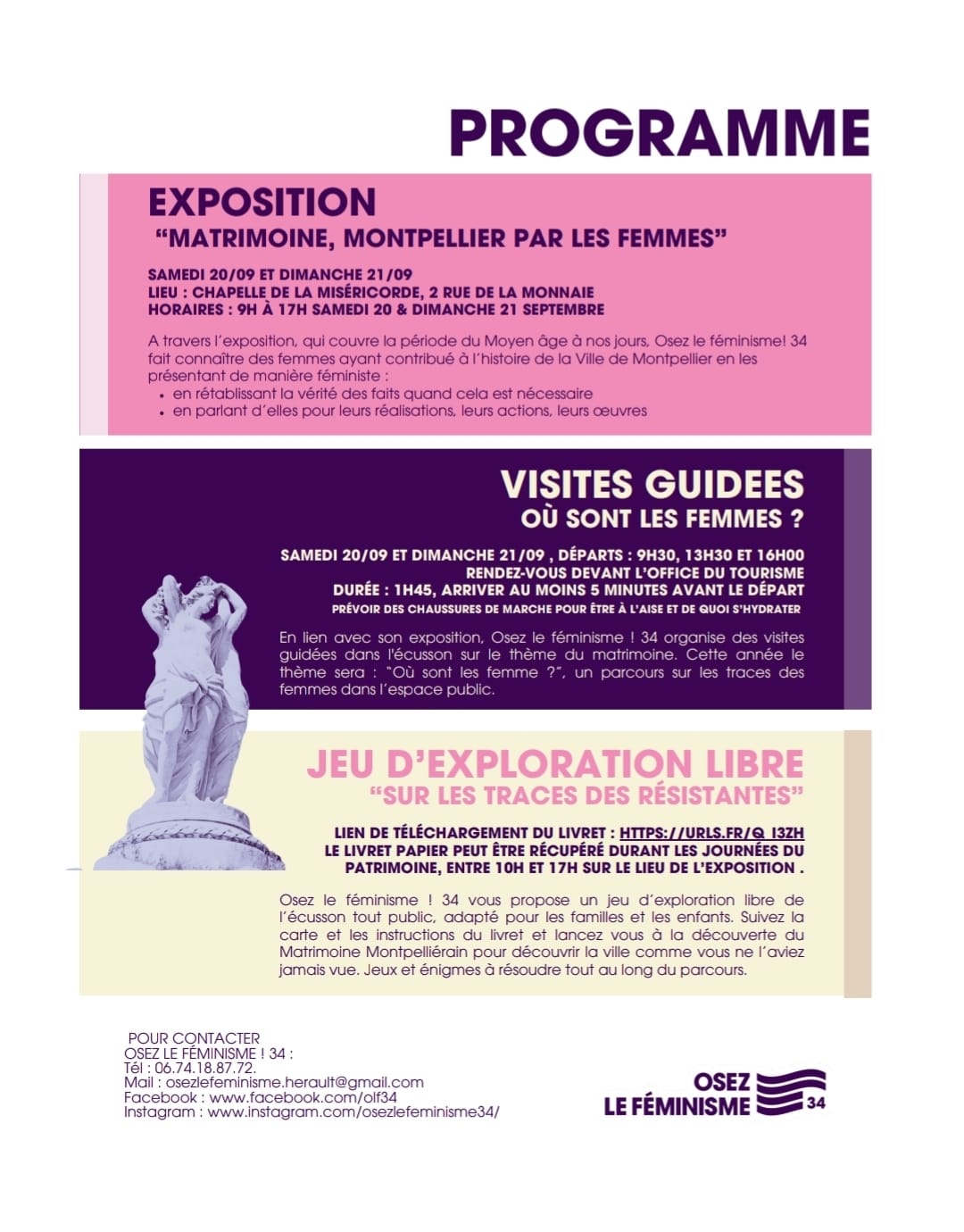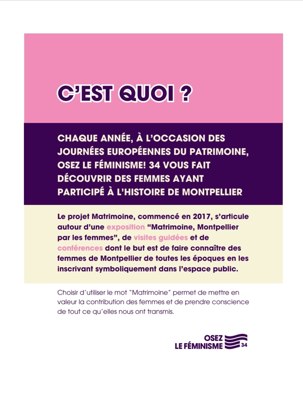 Les 20 et 21 septembre 2025, dans le cadre des journées européennes du patrimoine, c’est le retour des journées du Matrimoine avec « Osez le Féminisme 34 ».